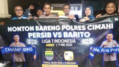 NNCJABAR. COM ‘ Padalarang, – Suasana penuh euforia menyelimuti halaman parkir Polsek Padalarang Jumat malam, 9 Mei 2025. Kapolsek Padalarang, Danramil Padalarang, Forkopincam Kecamatan Padalarang dan Ngamprah, bersama masyarakat setempat menggelar nonton bareng (nobar) untuk merayakan kemenangan Persib Bandung sebagai juara Liga BRI 2024-2025. Sorak sorai dan musik meriah mengiringi perayaan tersebut, menciptakan atmosfer kebahagiaan dan persatuan di antara para bobotoh.